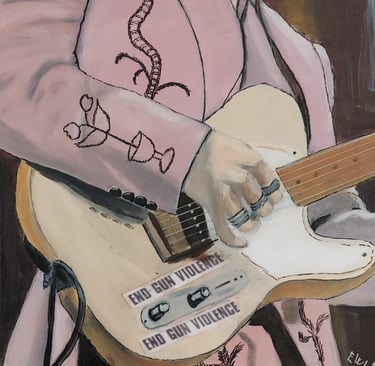Gitaarspeler, olie op doek, 50x50 cm n.b.