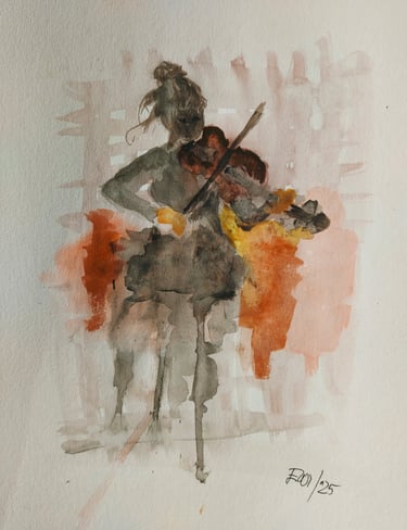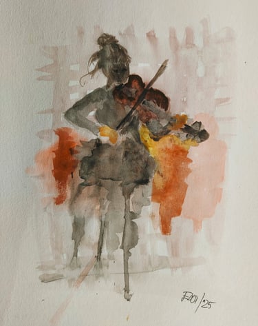 Cello speler, olie bewerkt met papier op canvasplaat, 24 x 30 cm n.b.